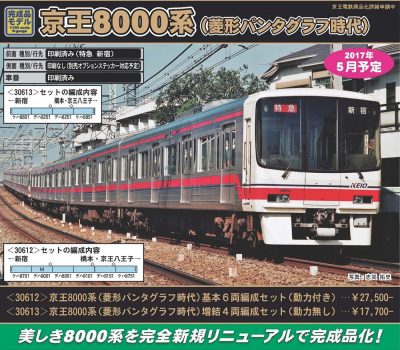 [新]  30613  京王8000系(菱形パンタグラフ時代)増結4両編成セット(動力無し) 17,700円+税