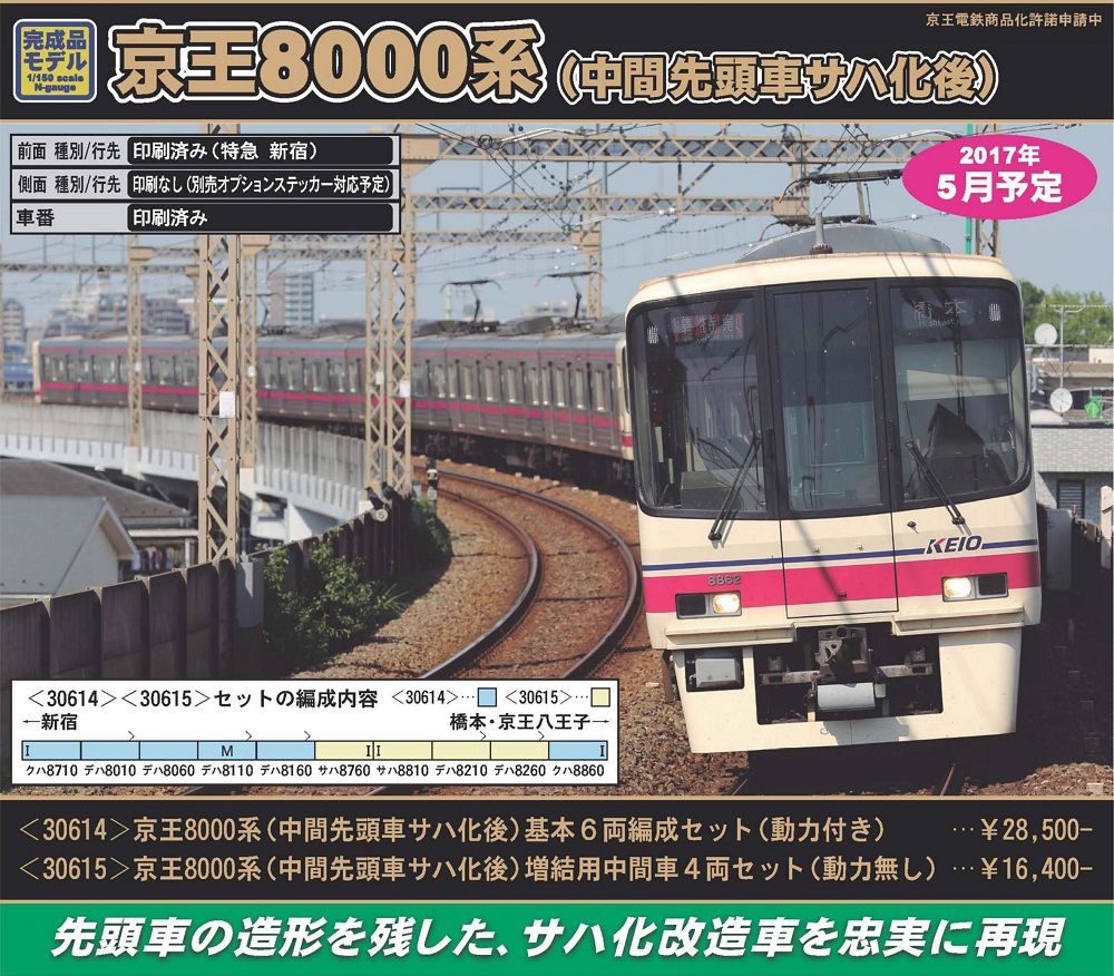 [新]  30614  京王8000系(中間先頭車サハ化後)基本6両編成セット(動力付き) 28,500円+税