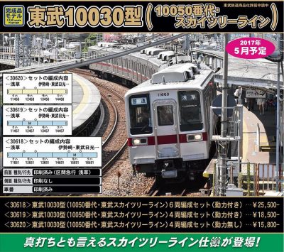 [新]  30619  東武10030型(10050番代・東武スカイツリーライン)4両編成セット(動力付き) 18,500円+税
