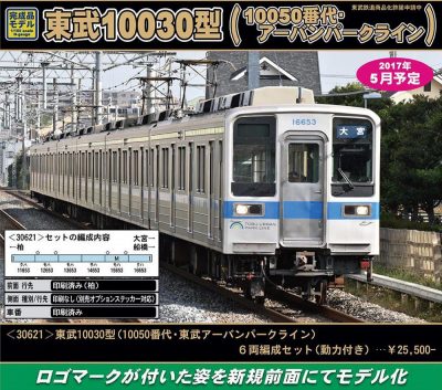 [新]  30621  東武10030型(10050番代・東武アーバンパークライン)6両編成セット(動力付き) 25,500円+税