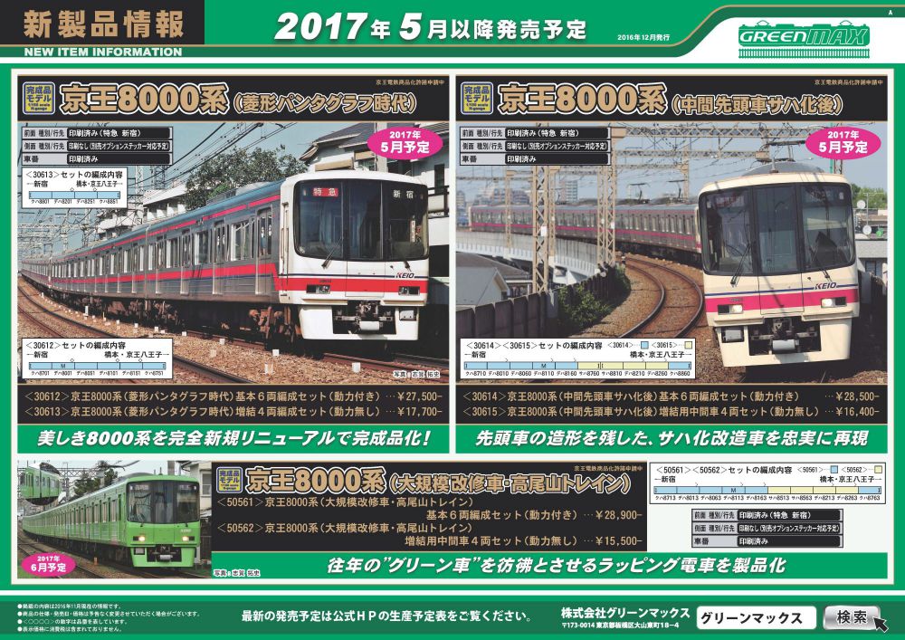 発売予定品情報 2017年04月、05月、06月のポスターがGREENMAX(グリーンマックス)公式サイトに掲載されました。