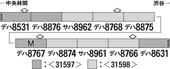 | 再 | 31597 | 東急電鉄8500系(軽量車・8631編成・行先点灯・黄色テープ付き)基本4両編成セット(動力付き) | 21,450円 |
