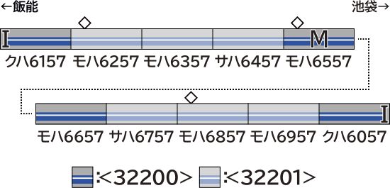 | 西武6000系(6157編成・PMSM試験車・白ライト)増結用中間車6両セット 32201 |