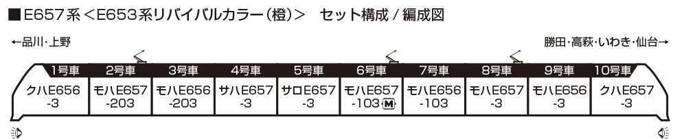 | 新 | 10-1874 | 特別企画品 E657系<E653系リバイバルカラー(橙)> 10両セット Amazon 楽天市場 Yahoo!ショッピング | 38,500円(税込) |