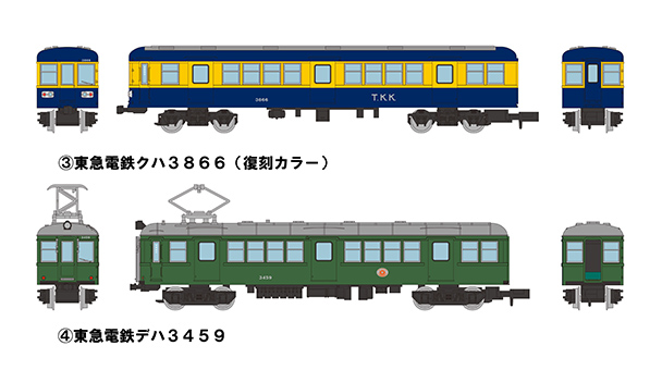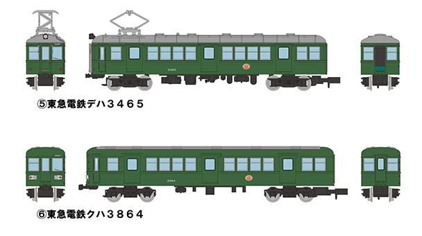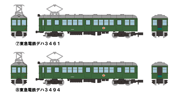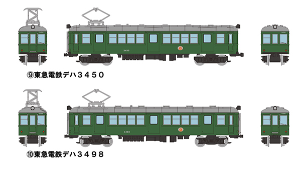 ④~⑩は3450形・3850形のバラエティに富んだ各形態をセレクトしました。貫通型デハ3459や非貫通の片運車デハ3461は車体形状の違いを新規で設定します。お好みの車両を組み合わせて往年の姿をお楽しみください。