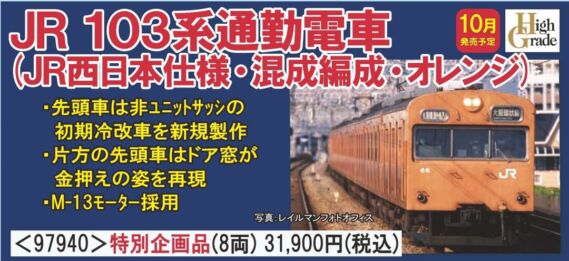 | 新 | 9014 | JR電車 サハ103形(JR西日本仕様・黒サッシ・オレンジ) | 3,080円 |