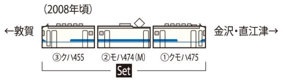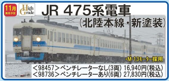 | 新 | 98457 | JR 475系電車(北陸本線・新塗装・ベンチレーターなし)セット | 16,940円 |