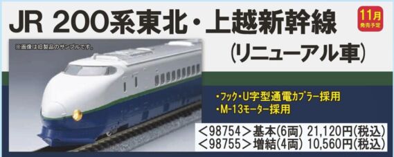 | 新 | 98755 | JR 200系東北・上越新幹線(リニューアル車)増結セット | 10,560円 |