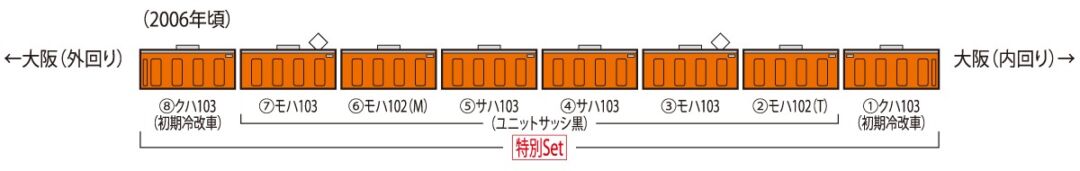 | 新 | 97940 | 特別企画品 JR 103系通勤電車(JR西日本仕様・混成編成・オレンジ)セット | 31,900円 |