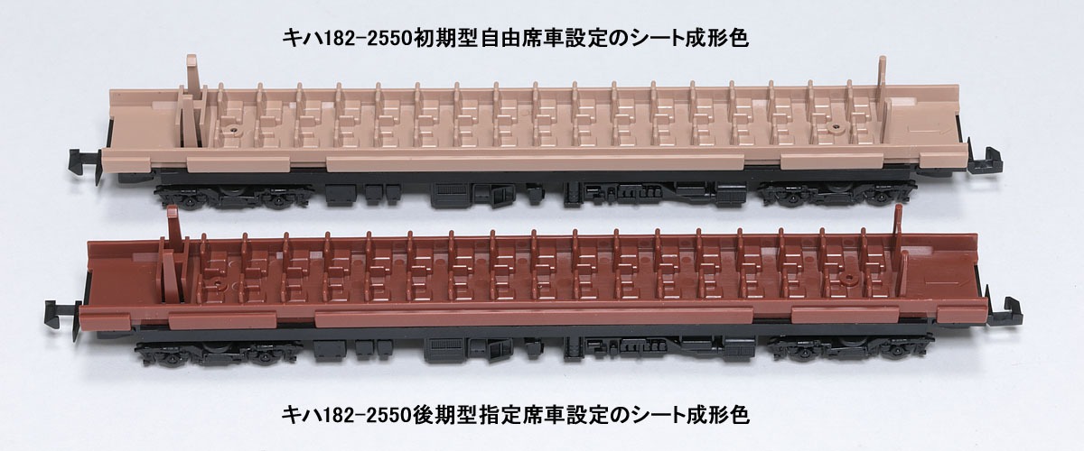 実車において、指定席車と自由席車でグレードが異なるシートを装備しており、模型では作り分けた初期型を自由席車に設定しています。