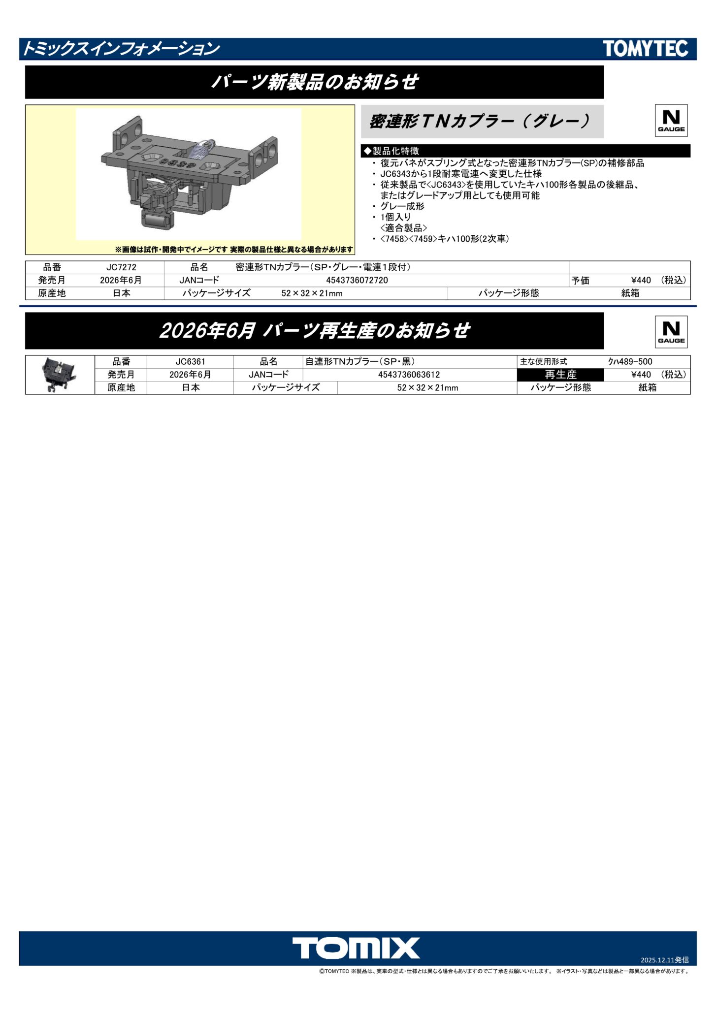 ・TNカプラー(SP)標準装備