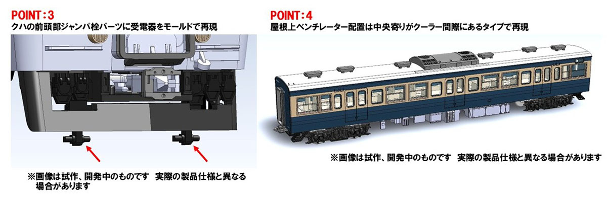 ●クイフォンの位置が低い前頭部や全部戸袋窓配置が特有のクハの車体を再現