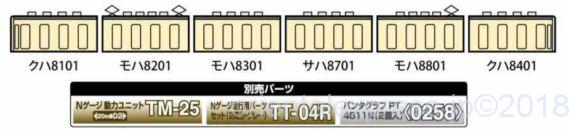 動力ユニットは20m級A2 TM-14 、走行化パーツはTT-04Rグレーを指定。パンタグラフは<0238>PG16を推奨します。