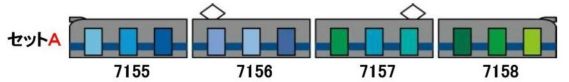 今回は以前発売しました第1編成のオレンジ、第2編成のブルーに続き、グリーンの第3編成を製品化致します。