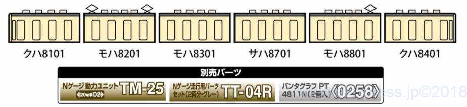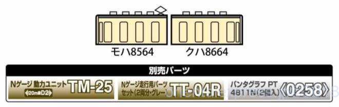別売りパーツの動力ユニットはTM-06R、走行用パーツはTT-04Rを指定、パンタグラフは<0238>PG16を推奨しています。