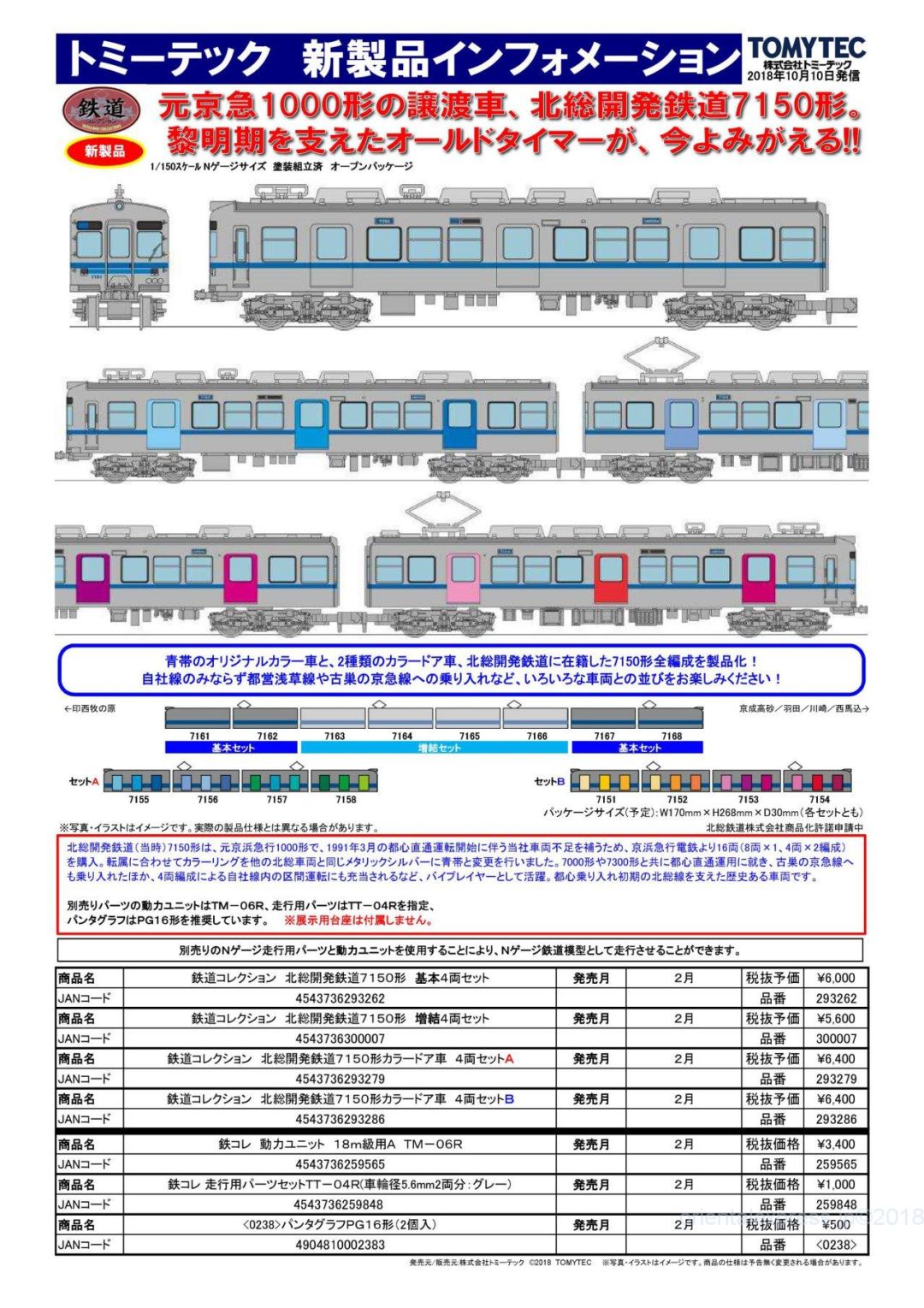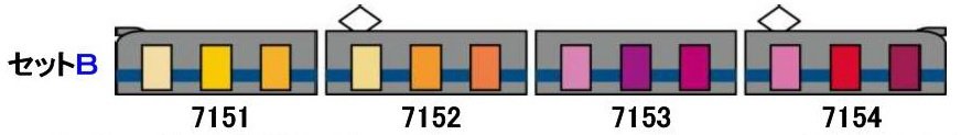青帯のオリジナルカラー車と、2種類のカラードア車、北総開発鉄道に在籍した7150形全編成を製品化!