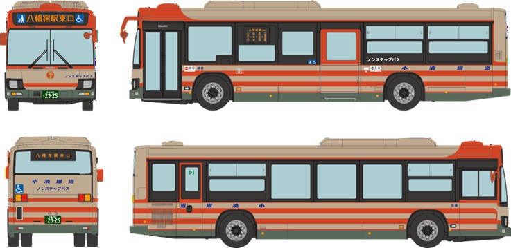 製品では、三菱ふそう エアロスターのワンロマカラー赤色とEライナーで登場したワンロマカラー緑色の2色を製品化致します。
