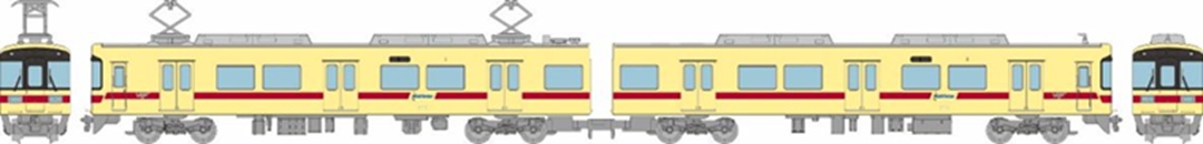 西日本鉄道7050形は7000形をマイナーチェンジした形式です。甘木線直通のワンマン列車に使用されていた600形の置き換え用として2003年に導入されました。車体は7000形の4扉から本形式では3扉へと変更し、10人掛座席の中央部に設けられたスタンションポールによって、定員着席を促す構造となっています。2025年度~2027年度にかけて貝塚線への転用工事が行われ、順次従来型車両である600形を置き換える予定です。今回は貝塚線への転用工事が行われ、オキサイドイエローに赤帯を纏った7050形を製品化いたします。