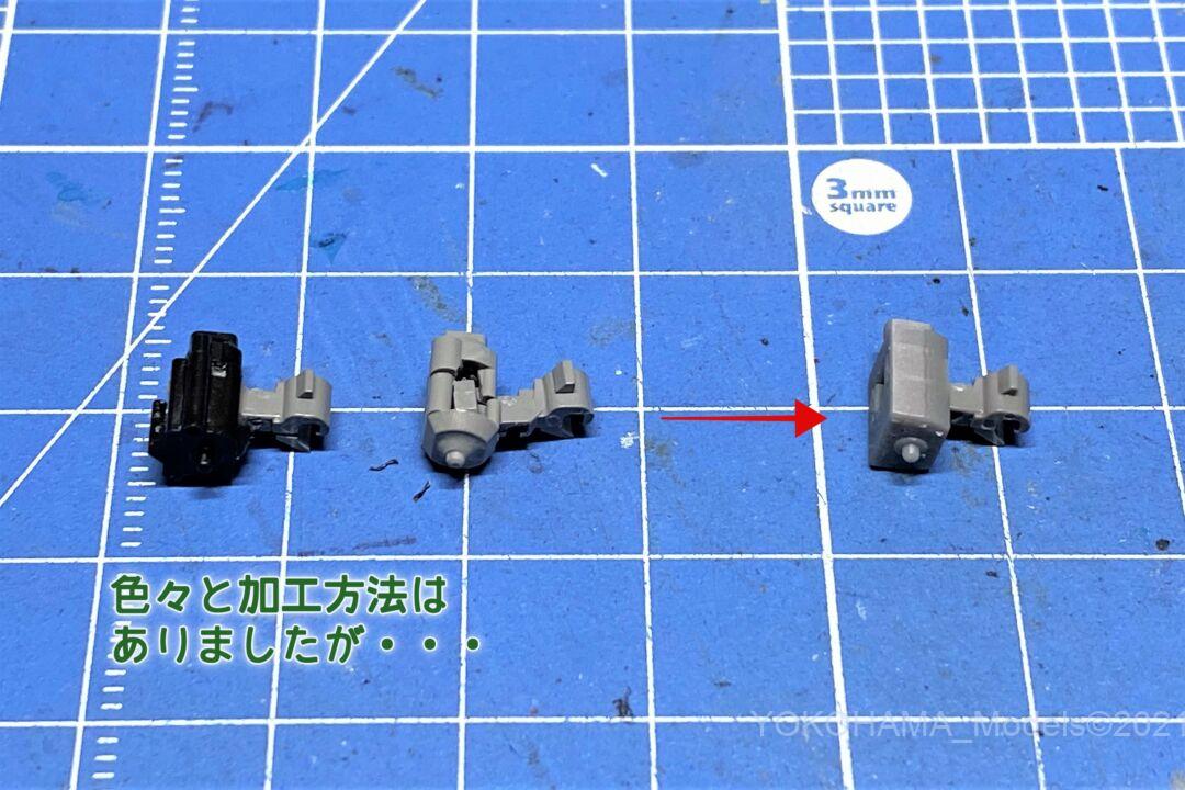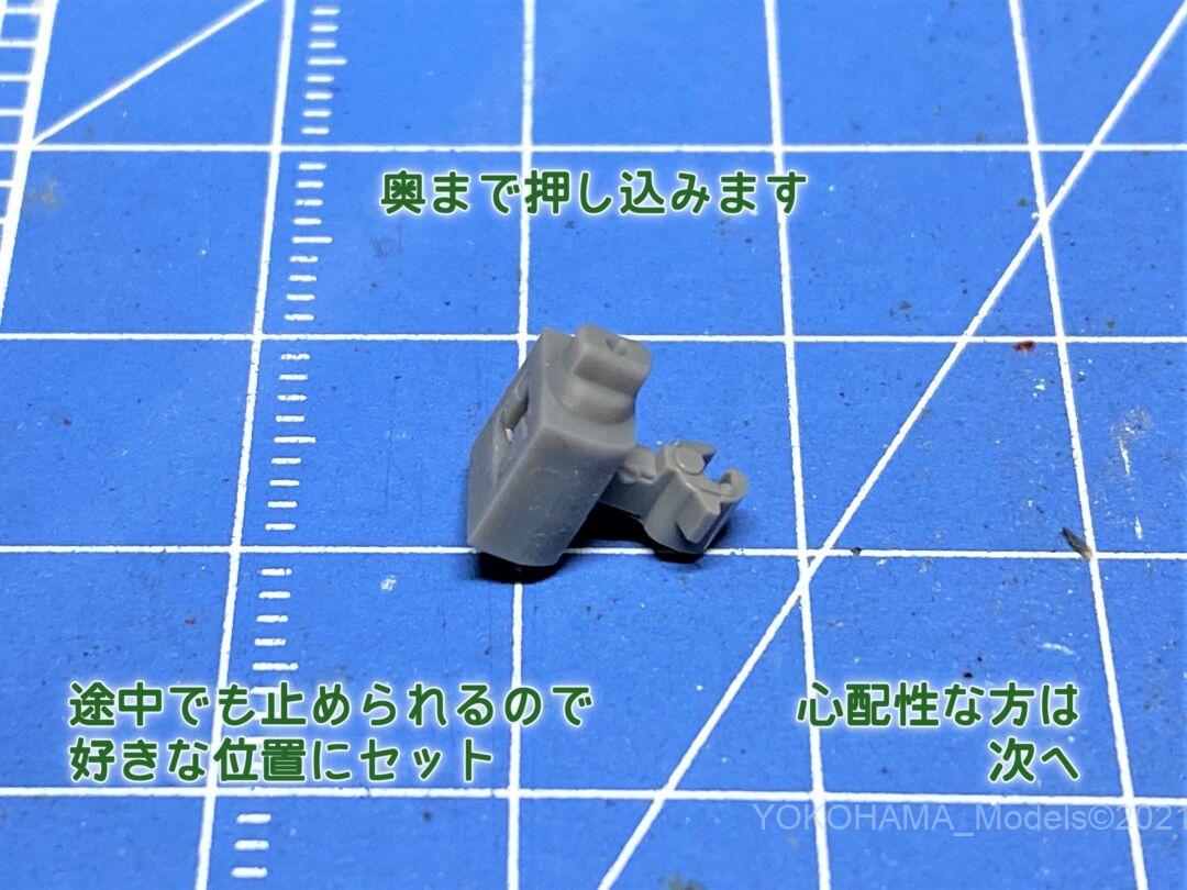 上部に1.0㎜の穴が開いていますので、真鍮丸線1.0㎜とかプラ丸棒を使ってピンの代用に差し込むと良いかと思います。