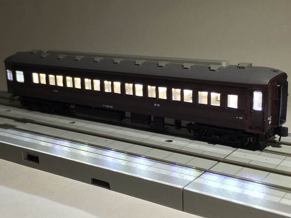 さくらの珍編成「うばざくら」タイプで使用しているスハネ30-63に室内灯を装備しました。