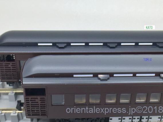 スハテ35の屋根とボディーの隙間が実車のように雨トイの溝っぽくなっていますが、KATOの方はどういう訳か溝って言うよりも隙間でしょうね。目視でも目立ちます。